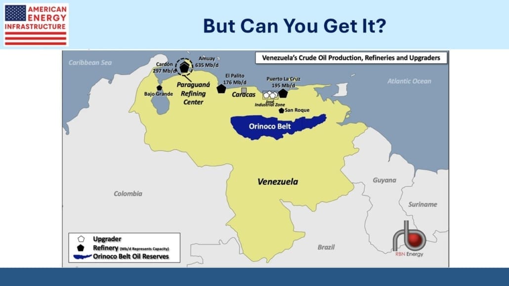 Midstream energy infrastructure is nicely insulated from the shifting geopolitical/energy landscape. We don’t expect pipeline companies to be involved in rebuilding Venezuela’s infrastructure. There will be questions about Canadian pipeline exports, but little else to concern investors. The President’s desire to grow production can’t be bad for volume-based businesses. Pipelines look cheap.