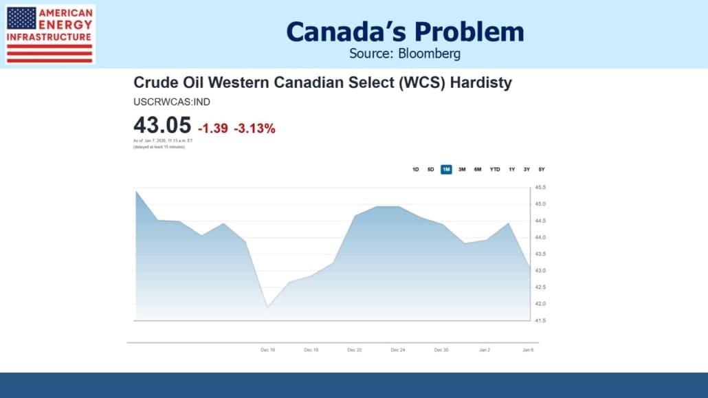 The prospect of increased heavy Venezuelan crude reaching SE Texas has boosted stocks like refiner Valero but has weighed on Canadian pipeline companies like Enbridge (ENB) and Pembina (PBA). Investors are concerned that Venezuelan crude will displace Canadian production. While this is possible, Canadian crude output from tar sands doesn’t vary as easily as shale, where decline rates are fast and drillers can modulate output by altering their plans to drill new wells.